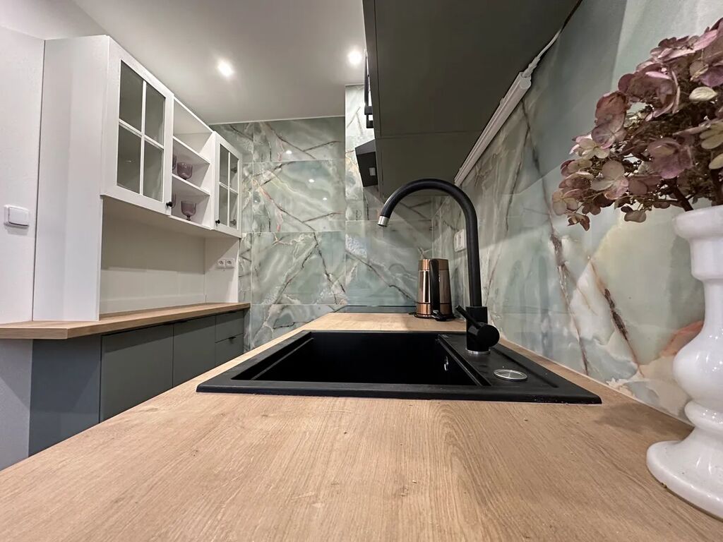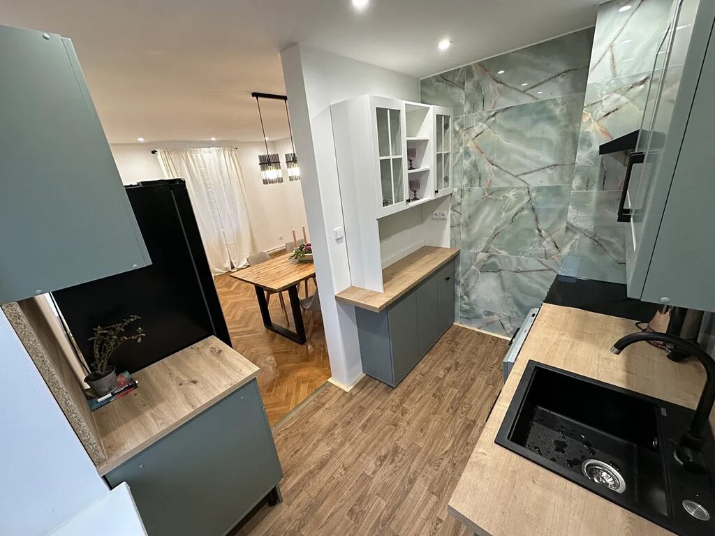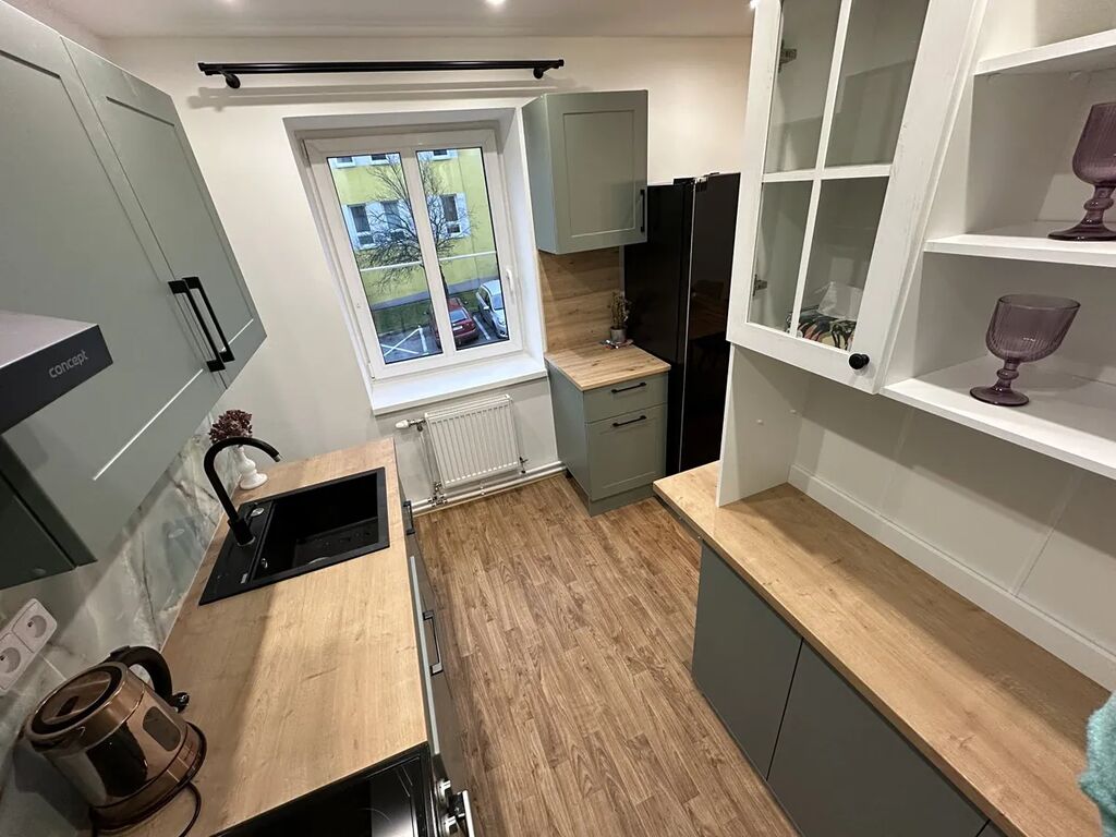 Nabízíme k pronájmu ( s možností odkupu) světlý a prostorný byt 4+1 o celkové výměře 78 m² včetně sklepa, který se nachází ve druhém patře cihlového činžovního domu v klidné části Tanvaldu. Byt prošel kompletní rekonstrukcí – nové elektrické rozvody, vodoinstalace, zateplené a snížené stropy s moderními bodovými světly – a působí velmi útulně a vzdušně. Dispozice zahrnuje tři samostatné pokoje a obývací pokoj propojený s jídelnou a kuchyní, dále malou technickou místnost s bojlerem, novým elektrickým kotlem a odečtem vody, koupelnou se sprchovým koutem, wc samostatně. V bytě zůstaly původní dřevěné parkety v pokojích, ostatní prostory mají dlažbu či PVC. Součástí vybavení je nová americká lednice Concept s mrazákem, myčka Whirlpool, sporák s troubou, digestoř a v koupelně pračka Beko. K bytu náleží sklepní prostor i půda. Okolí domu nabízí zahradu ve správě města, kterou lze využívat k odpočinku nebo věšení prádla... Přímo před domem se nachází sportovní areál a základní škola, v blízkosti je i mateřská školka, takže lokalita je ideální pro rodinu s dětmi. Tanvald leží téměř v srdci Jizerských hor, což poskytuje bohaté možnosti sportovního a turistického vyžití – v létě pěší výlety po kopcích, v zimě pak lyžování v nedalekých areálech Tanvaldský Špičák, Rejdice, Černá říčka, Paseky nad Jizerou, Rokytnice nad Jizerou, Harrachov, Kořenov či Horní Polubný. Byt je připraven k nastěhování ihned. Měsíční nájemné 18.800,- plus zálohy na vodu a měsíční zálohy na elektřinu, kterou si nájemník přepisuje na sebe. Požadována je vratná kauce a provize RK. Prohlídky je možné domluvit i o víkendu. domácí mazlíček nevadí. Tento byt nabízí klidné a komfortní bydlení vhodné pro mladý pár či rodinu, kteří ocení kvalitní rekonstrukci, prostorné dispozice i skvělou polohu v blízkosti přírody.