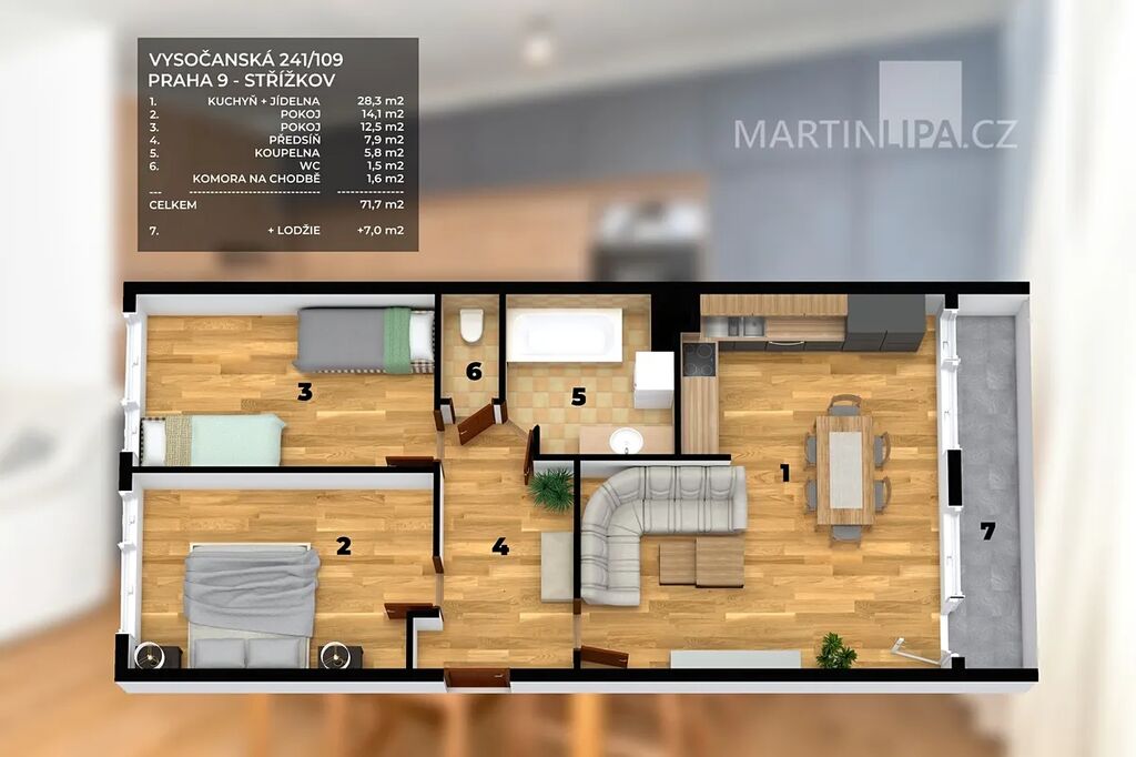 Prodej bytu 3+kk, Praha - Střížkov, Vysočanská, 71 m2 (ID: 2736778)