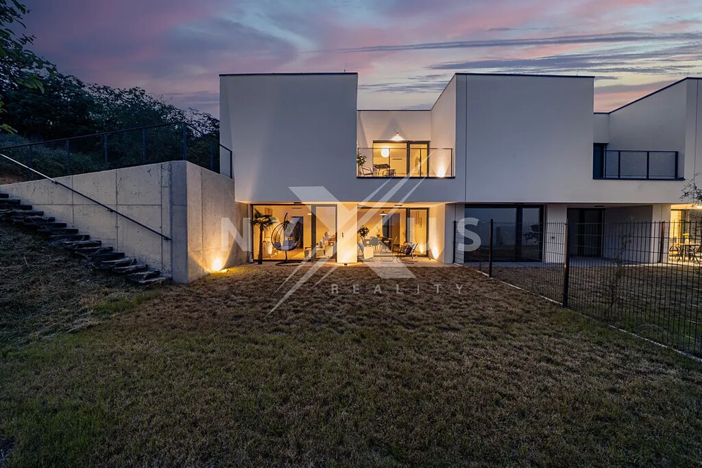 Tato architektonicky promyšlená novostavba nabízí komfortní rodinné bydlení s nádhernými výhledy na Prahu, nadstandardním zázemím a klidnou atmosférou uprostřed zeleně.