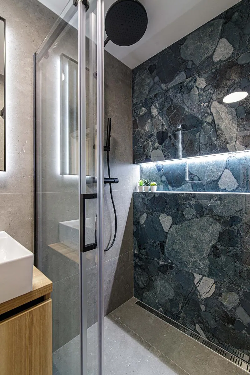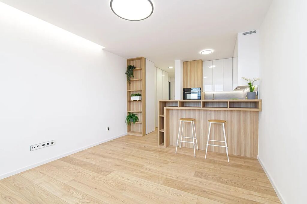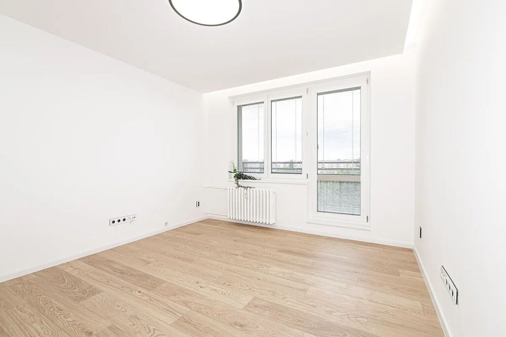 V bytě byla provedena kompletní rekonstrukce, která obsahuje nově vylité podlahy, elektroinstalaci, sádrové omítky, SDK nasvícené podhledy, nové topení. Součástí pronájmu je nová kuchyňská linka s lednicí, kombinovanou mikrovlnou troubou, indukční varnou deskou a vestavěnou pračkou. Na chodbě se nachází vestavěná skříň a botník. Koupelna je spojená s WC a nachází se v ní sprchový kout.