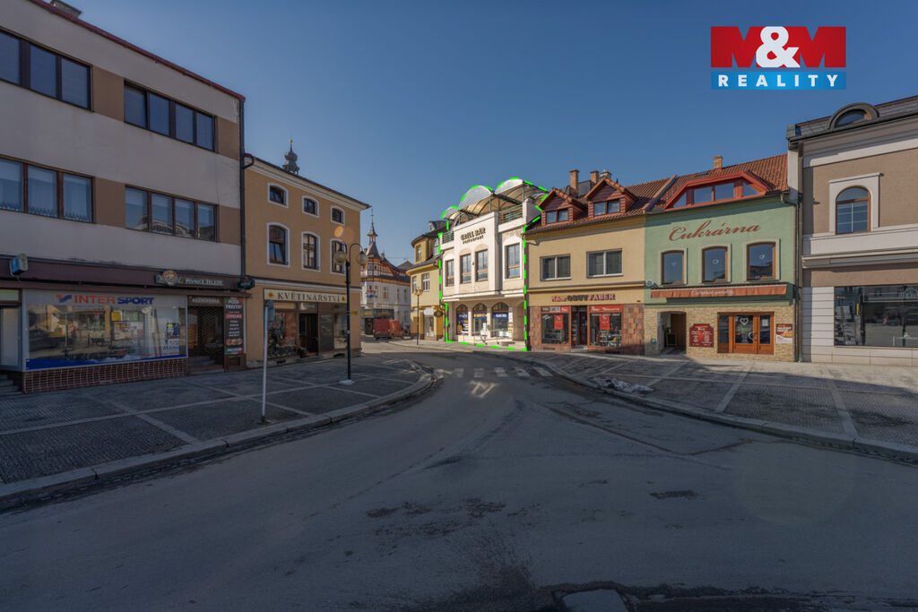Nabízíme Vám k prodeji komerční objekt na Masarykově náměstí v Rožnově pod Radhoštěm. Dům je přístupný z náměstí a má k dispozici, jako málokterá nemovitost v této lokalitě, 8 parkovacích míst. V 1. NP je dlouhodobě užíván nájemcem, ve 2. NP je již zahájena příprava prostorů buď pro několik menších komerčně využívaných prostor, případně pro dvě až tři bytové jednotky. Ve 3. NP je již zpracován návrh na vybudování bytu o celkové ploše cca 160 m² s prostornou terasou a výhledem na horu Radhošť a Jurkovičovu rozhlednu. Náš hypoteční specialista Vám nabídne vhodné financování této nemovitosti. Doporučujeme prohlídku.