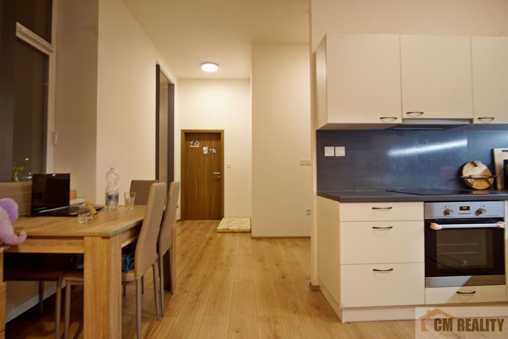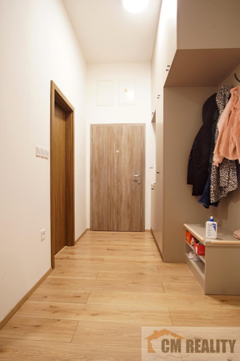 Dominantou bytu je světlý a prostorný obývací pokoj s plně vybavenou kuchyňskou linkou. K dispozici je vestavěná trouba s indukční varnou deskou, myčka na nádobí i odsavač par. Koupelna je vybavena sprchovým koutem, umyvadlem a závěsným WC. Prostor na pračku je elegantně ukryt ve vestavěné skříni v předsíni.