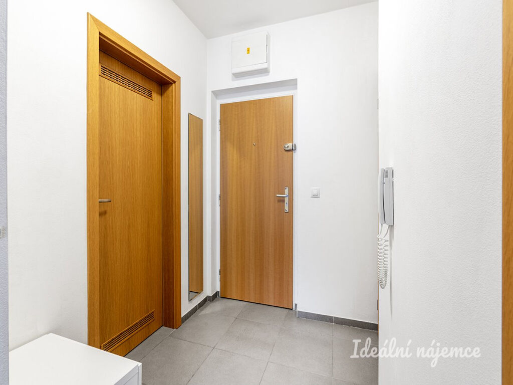 Byt je nabízen částečně vybavený, což umožňuje doladit interiér podle vlastního vkusu. Kuchyň je plně vybavena lednicí s mrazákem, elektrickou a mikrovlnnou troubou, indukční varnou deskou, digestoří a myčkou. Obytná část poskytuje prostor pro pohodlnou sedací soupravu či jídelní kout. Samostatný pokoj je ideální jako ložnice. Koupelna disponuje vanou, umyvadlem, koupelnovou skříňkou a pračkou, toaleta je samostatná.
