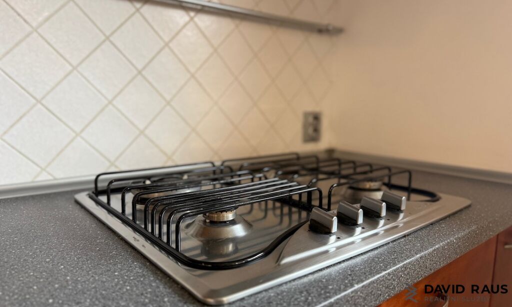 Po vstupu do bytu se ocitnete v příjemném, světlém prostoru s kuchyňskou linkou, obývací a spací částí. Kuchyň je plně vybavená – nechybí lednice, myčka, trouba ani mikrovlnná trouba. Na kuchyň navazuje obývací část s jídelním stolem, televizí, konferenčním stolkem a velkou šatní skříní se zrcadlem. Spací zóna je částečně oddělena dřevěnými trámy, které zároveň dotvářejí jedinečnou atmosféru interiéru. Nachází se zde nová manželská postel s roštem a matrací a dostatek úložného prostoru díky vestavěným skříním. Koupelna je vybavena sprchovým koutem, toaletou a pračkou. V bytě je bojler na ohřev vody. Podlahy tvoří kombinace dlažby a koberce v teplých hnědých tónech, celý byt je nově vymalovaný na bílo. Součástí pronájmu je i kompletní vybavení – ručníky, župan a kvalitní sušák na prádlo, takže se můžete ihned nastěhovat a bydlet bez nutnosti dalších investic.