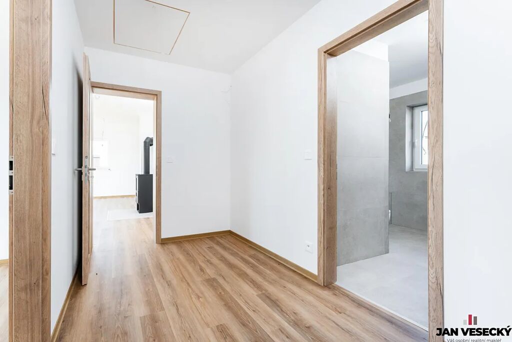 Co se týká vybavení a zařízení domu, tak zde uvedu hlavní body. Vytápění a ohřev vody zajišťuje tepelné čerpadlo vzduch - voda doplněné zásobníkem vody na 190l. V celém domě je rozvedeno teplovodní podlahové topení a navíc jsou zde ještě samostatně stojící krbová kamna. Podlahová krytina je kombinací vinylu a velkoformátové dlažby. Okna jsou plastová s celoobvodovým kováním a jedná se o sedmikomorový profil s trojsklem. Interiérové dveře mají výšku 210 cm s CPL úpravou pro jejich snadnou údržbu a dlouhou životnost.