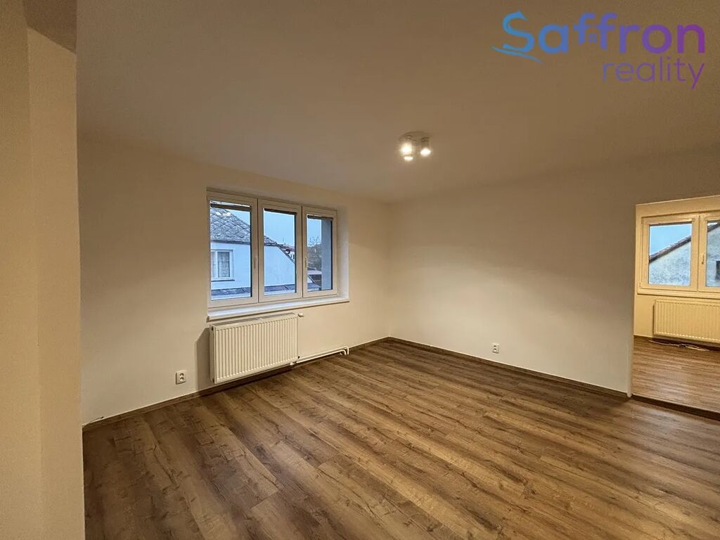 Součástí dispozice je kuchyň s linkou vybavenou kombinovaným sporákem a digestoří, koupelna s vanou a toaletou a prostorný průchozí obývací pokoj. K dispozici jsou také dva samostatné pokoje, které je možné využít jako ložnici, dětský pokoj nebo praktickou šatnu. Ohřev vody i vytápění zajišťuje plynový kotel. Byt má snížené stropy a dům je zateplen, což přispívá k nižší energetické náročnosti.