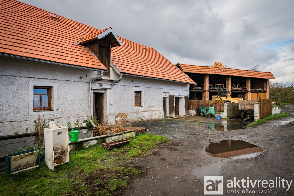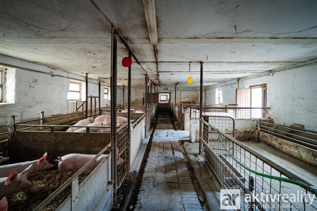 Naproti obytné části se nacházejí dvě hospodářské budovy – menší a větší chlévy, které jsou v dobrém technickém stavu. Větší chlév má přibližně 320 m², menší okolo 35 m². Obě stavby mají pevné zdivo, jsou suché a stabilní, a nad nimi se rozkládá rozsáhlý půdní prostor vhodný pro skladování nebo další využití. Na stodolu dále navazuje vysoký otevřený přístřešek o ploše přibližně 122 m², který nabízí další prostor například pro techniku či materiál.
