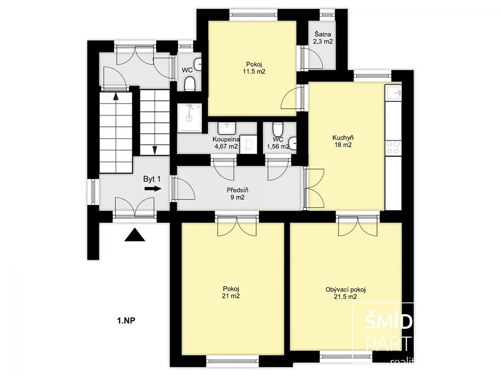 Na byt lze uplatnit odpočet DPH (12%), v tom případě je cena 7,946.429,- Kč.