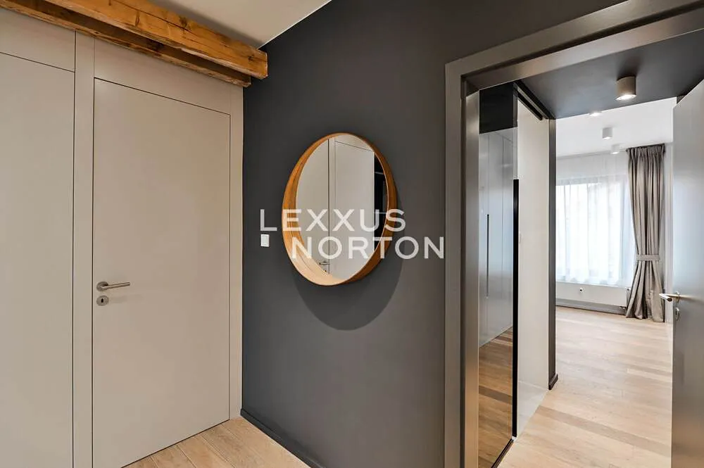 Dispozice bytu zahrnuje vstupní hala, designová koupelna, dvě prostorné ložnice a vzdušný obývací pokoj s vybaveným kuchyňským koutem a komorou. K bytu náleží parkovací stání.