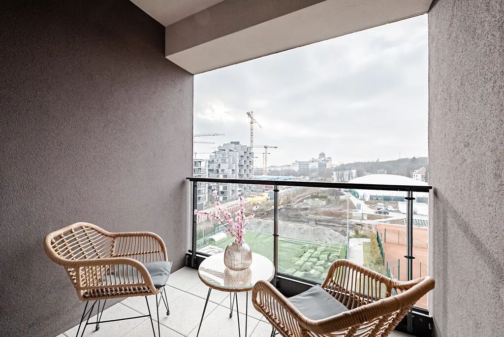 Nový nadstandardní, světlý plně zařízený byt 2+kk (50m2) s balkonem (4m2) a parkováním v podzemní garáži, situovaný v 6. nadzemním podlaží moderního a vysoce kvalitního rezidenčního komplexu Greenport Residence.