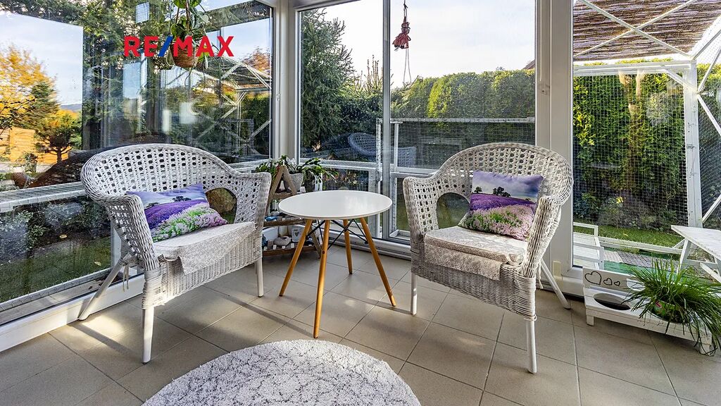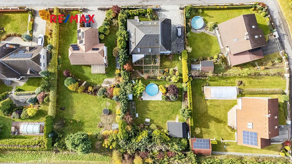 Dominantou nabídky je krásná, pečlivě udržovaná zahrada. Vzrostlé keře a kvalitní oplocení vytvářejí přirozenou clonu od sousedních pozemků, takže získáte skutečné soukromí pro rodinu i přátele. Zahrada je mírně svažitá, pečlivě a pravidelně udržovaná a nabízí několik „zón“: prostor pro ranní kávu na terase, trávník na dětské hry, zákoutí pro bylinkový či zeleninový záhon a klidné místo na večerní posezení. Díky promyšlené výsadbě je tu příjemně od jara do podzimu – a i v zimě zahrada působí upraveně.