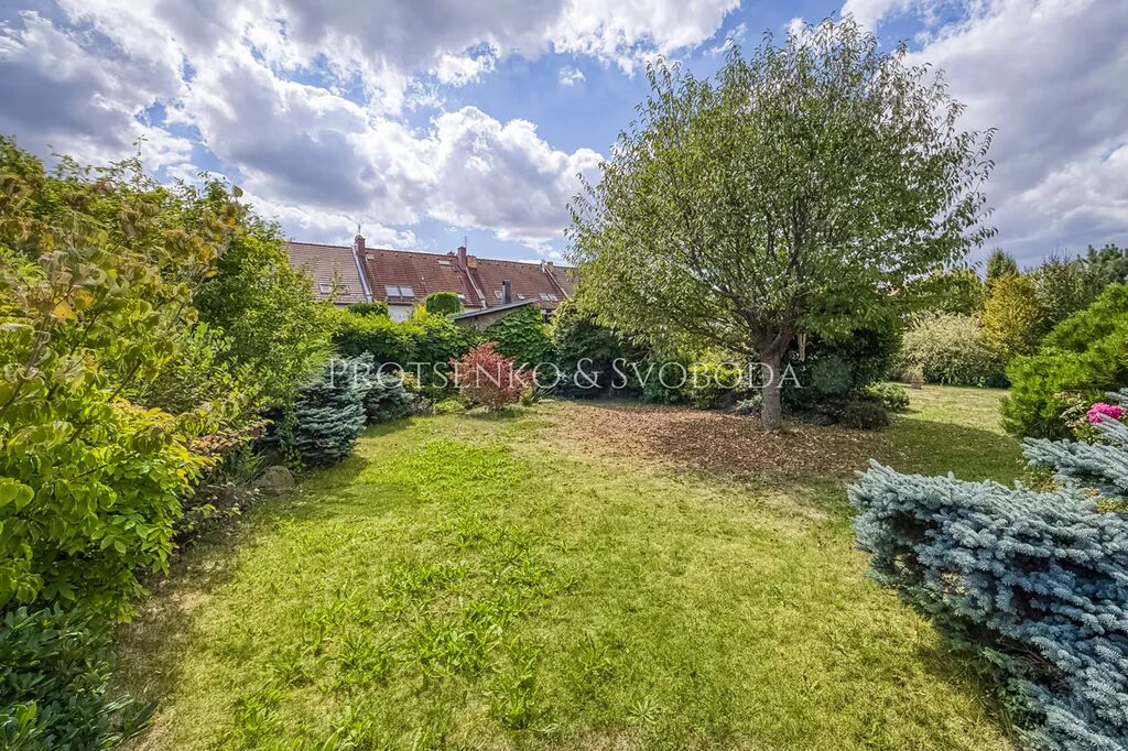 Zahrada o velikosti 800 m² byla navržena architektem s důrazem na estetiku i funkčnost. Poskytuje dostatek soukromí, relaxačních zón a je plně připravena na pohodlné užívání.
