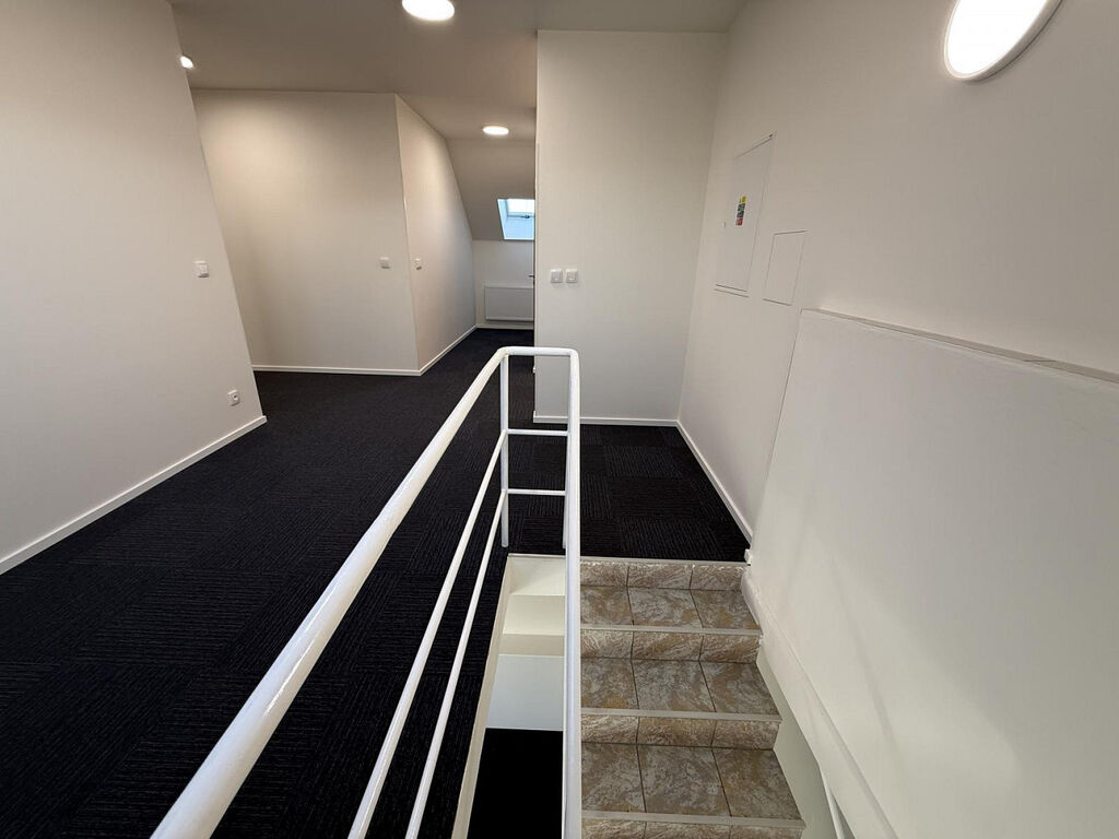 Prostor je ideální jako kancelář, výdejna e-shopu atd. V komplexu je možné pronajmout i další kanceláře. Součástí pronájmu jsou i sociální zařízení, kuchyňka a společné prostory.