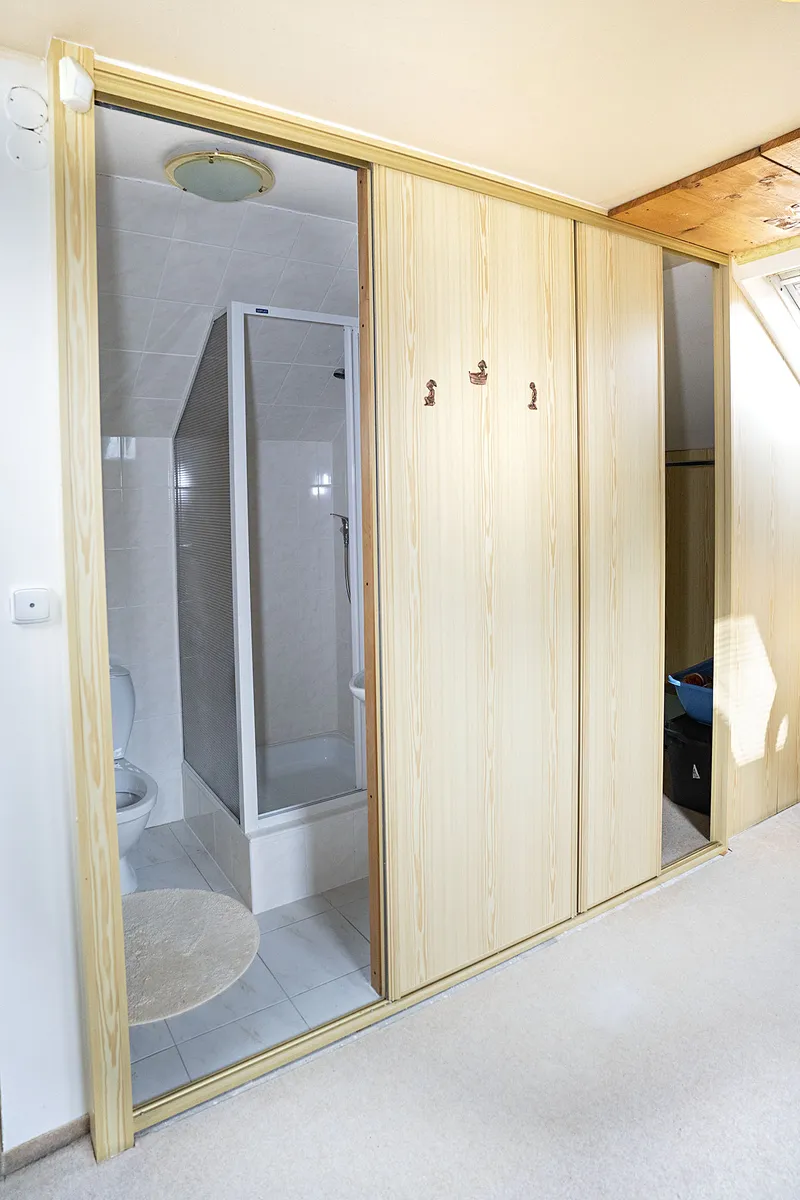 II.NP: zádveří, chodba, místnost se sprchou a WC, 3 místnosti, další místnost se sprchou a WC.