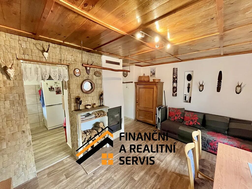 V přízemí je koupelna se sprchovým koutem, wc, kuchyň s plynovým sporákem a obývací pokoj s krbovou vložkou.