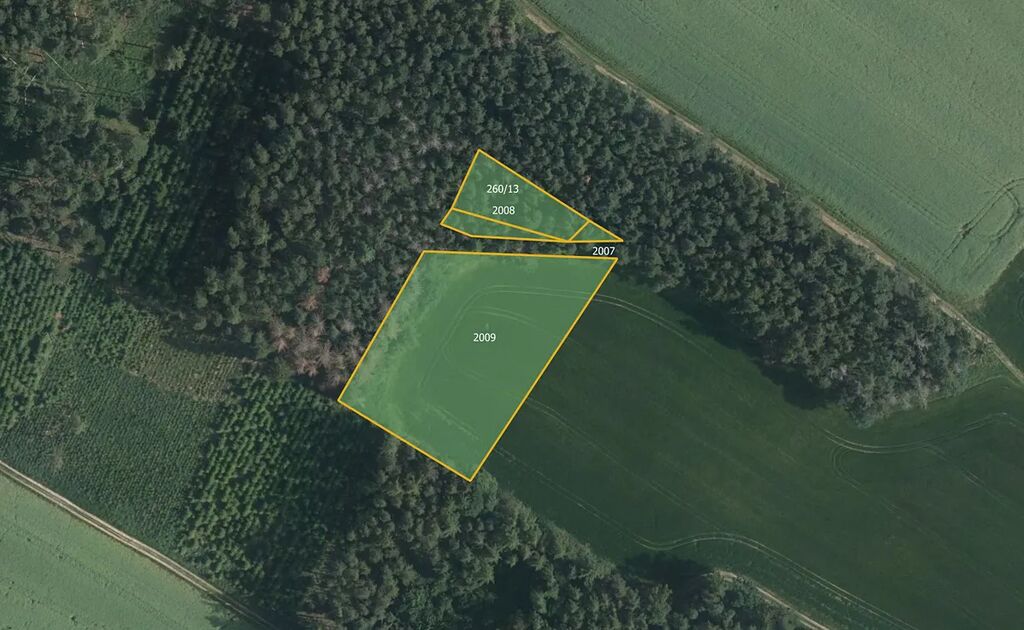 Dále jsou součástí prodeje i tři lesní pozemky v blízkosti polí: