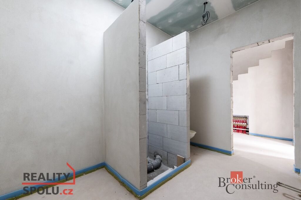 Dům je připravený k dokončení obkladů a sanity, podlah, dveří a kuchyně. Tyto položky nejsou zahrnuty v kupní ceně, je ale možné zajistit jejich dokončení.