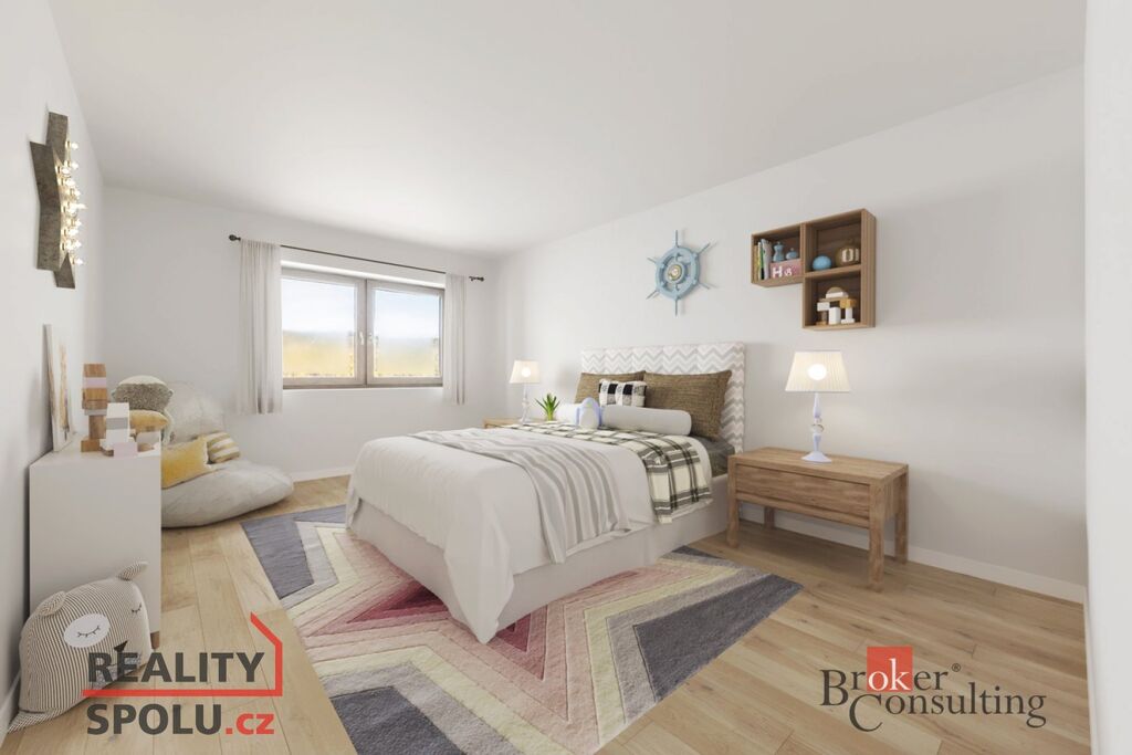 V patře se nachází klidová část domu s prostornými ložnicemi, nechybí zde ani šatny, dvě koupelny a technická místnost. Užitná plocha tohoto patra je 98m2.