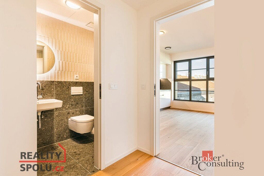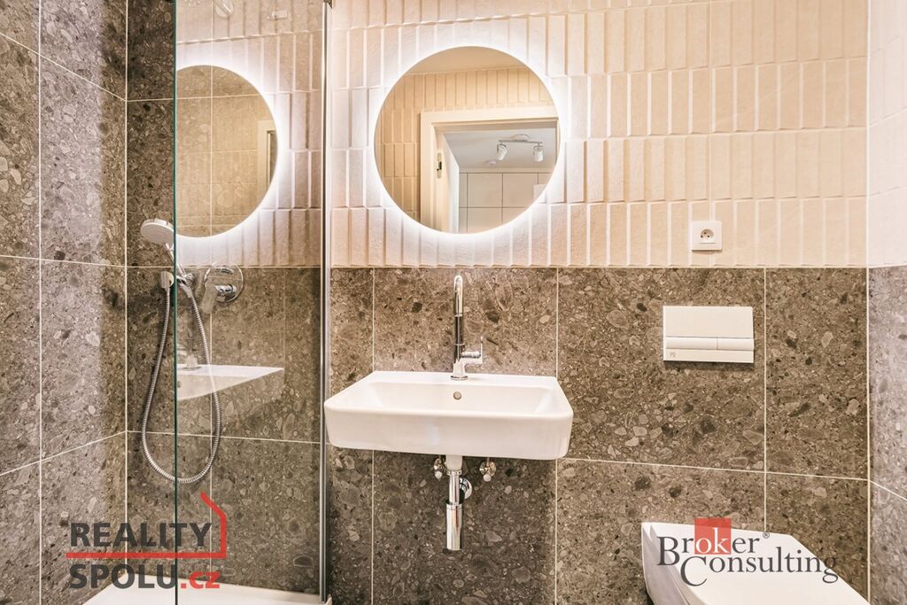 Úsporné LED smart osvětlení v celém bytě, vestavná skříň v chodbě a stylová koupelna s moderním designem. Byt má energetický štítek B, což zajišťuje nízké provozní náklady.