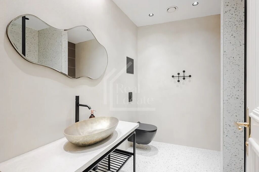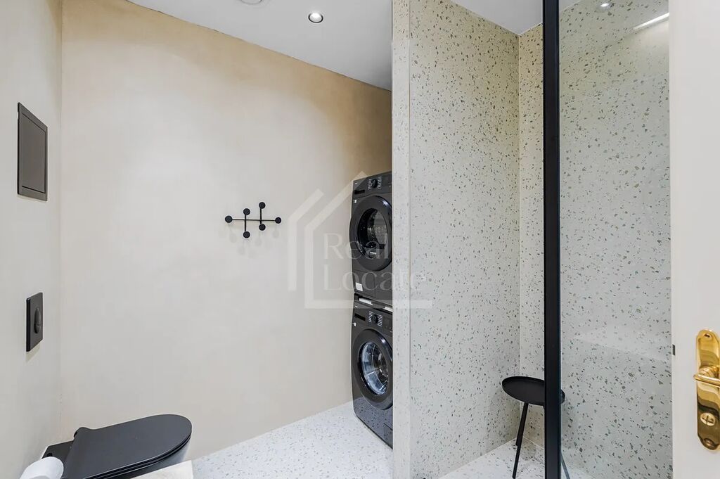 Bytová jednotka je kompletně zařízena stylovým nábytkem a dokončena ve vysokých standardech (dřevěná podlaha, mosazná kuchyň, krásné lustry, klimatizace atd). K bytu dále náleží sklep o velikosti 2m2.
