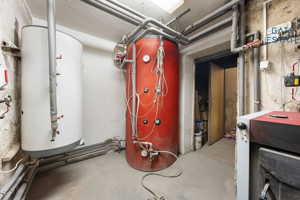 Praktický úložný prostor a technické zázemí – kotel na tuhá paliva a bojler pro ohřev teplé vody.