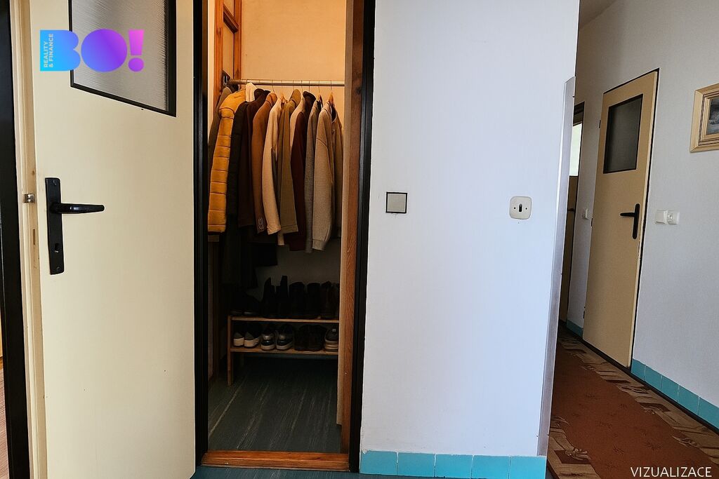 Kromě tří velkých pokojů byt nabízí také praktickou místnost, kterou lze využít například jako šatnu. Pokud máte děti a spoustu oblečení, které je potřeba někam schovat, určitě tento prostor oceníte.