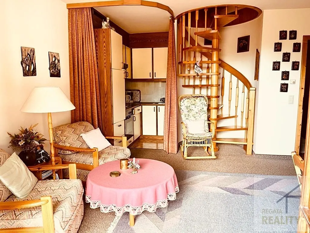 Tento mezonetový apartmán se nachází ve druhém patře a nabízí přibližně 63,5 m² obytné plochy a 8 m² balkon.