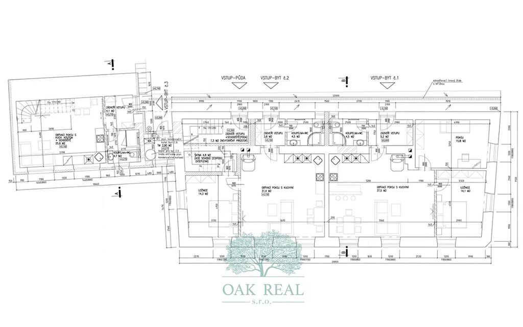 Výhradně si vám dovolujeme nabídnou k prodeji bytový dům před rekonstrukcí se stavebním povolením na břehu Lužnice, jen kousek od historického jádra města Tábor. Jedná se o dva původní dvoupodlažní objekty. Ty jsou aktuálně vyklizené a připravené k rekonstrukci. Součástí ceny je i vydané stavební povolení na kompletní rekonstrukci. Na základě platného stavebního povolení lze v hlavní budově v 2NP vytvořit dva byty s dispozici 2+kk a 3+kk. V 1NP ateliér 2+kk, dvojgaráž, sklepy pro byty a společnou technickou místnost. V samostatném objektu se počítá s mezonetovým bytem 3+kk. Celková obytná plocha je 276 m2, podlahová plocha včetně společných prostor jako jsou sklepy a technická místnost je 405 m2. Hlavní budova má dvě obytná podlaží a novou sedlovou střechu. Ta je vhodná pro případnou další vestavbu. Objekt je napojen na všechny dostupné sítě (elektrika, voda, kanalizace a plyn). Na pozemku se počítá kromě dvojgaráže v budově i se dvěmi parkovacími místy. Celý projekt je umístěn ve svahu a mimo záplavové území. V horní části pozemku může vzniknout malá zahrada s posezením. Projekt je určen pro malé a střední stavební společnosti, které mohou využít připraveného stavebního povolení. Tím mohou realizovat výstavbu nových bytů bez nutnosti řešit složitý inženýrink. V Táboře a jeho okolí se aktuálně nenachází žádný podobný kompaktní projekt v původní zástavbě města. Objekt nelze přestavět a využívat jako ubytovnu. V případě zájmu vám rádi pomůžeme s nalezením vhodného financování. Taktéž vám rádi pomůžeme s následným prodejem bytů a ateliéru. V případě zájmu o osobní prohlídku objektu nebo zaslání prezentace nás neváhejte kontaktovat.