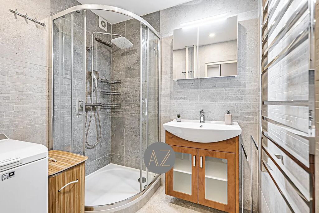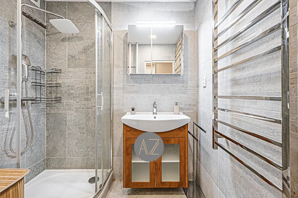 V koupelně a na WC je vysoce kvalitní velkoformátová dlažba a obklad.