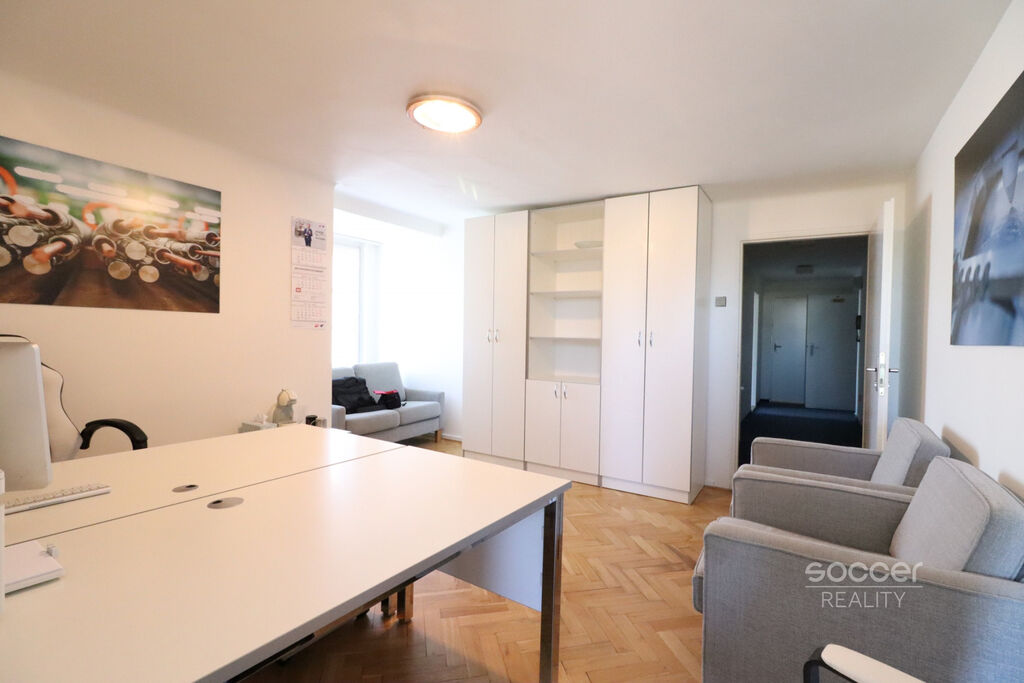 Prostor má celkem 27m2. Plně vybavená kuchyňka k dispozici na patře 12m2. Kancelář je vybavena kvalitním nábytkem.