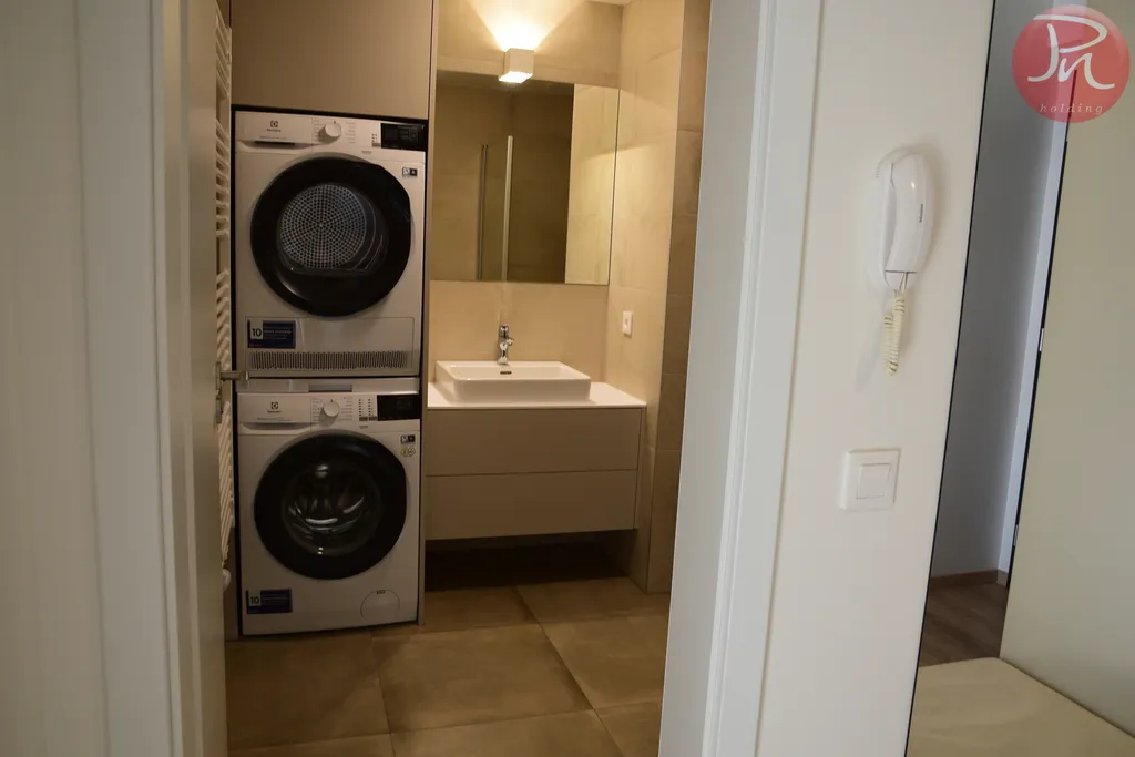 Interiér je světlý, prostorný a navržený s důrazem na moderní design, eleganci a funkčnost. Byt je vhodný pro jednotlivce nebo pár, kteří hledají vysoce komfortní a reprezentativní bydlení v samém centru dění.