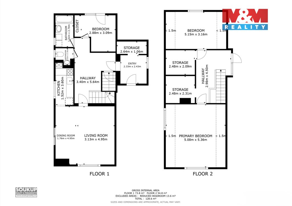 Ve 2. NP jsou dva pokoje – ložnice a dětský pokoj – a příprava na druhou koupelnu.