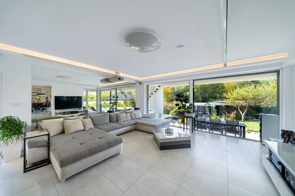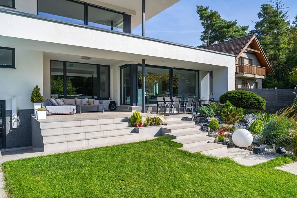 Už při příjezdu vás uchvátí architektura v moderním španělském stylu, která působí noblesně a přitom lehce – přesně jako domy v částech Evropy, kde se klade důraz na detail, harmonii a propojení s přírodou. Vila stojí na rozlehlém pozemku přímo u lesa, takže každý den začíná v naprostém klidu a končí pocitem, že jste na své soukromé dovolené.