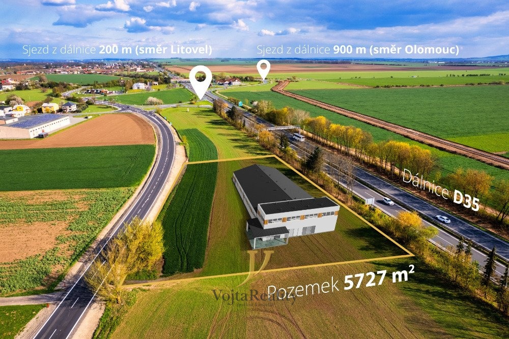 V blízkosti pozemku se nachází nový McDonald's, sjezd z dálnice D35 na Litovel, vzdálenost cca 200 m, následně sjezd z dálnice směrem na Olomouc cca 900 m.