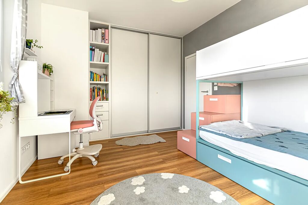 Pro zájemce o hezké a komfortní vlastní bydlení, nabízím exkluzivně byt v osobním vlastnictví 3+kk s lodžií i balkonem (81,6m2 + 9m2 + 6,8m2), včetně garážového stání a sklepní kóje. Dům, v němž je bytová jednotka situována ve 2. patře (3.NP), se nachází v klidné části Prahy 3 - Strašnice, ulice Zvěřinova. Dům byl vystavěn v rámci projektu TULIPA Třebešín I., a byl dokončen v roce 2016. Hlavní část bytu tvoří světlý obývací pokoj s kuchyňským koutem (celkem 30m2). Tento prostor skýtá dostatek místa pro sedací soupravu, rodinný jídelní stůl a kompletně vybavenou kuchyňskou linku (indukční varná deska, el. trouba kombinovaná s mikrovlnnou troubou, myčka, vinotéka), spotřebiče zn. Siemens a Electrolux. Po většinu roku tento obytný prostor příjemně rozšiřuje lodžie (9m2), orientována tak jako celý byt na jih. Byt dále nabízí dvě ložnice. Menší z nich, aktuálně využívaná jako dětský pokoj (13,7m2), má také přístup na lodžii společnou s obývacím pokojem. Větší ložnice (15,5m2), má součástí prakticky řešenou šatnu a vstup na samostatný balkon (6,8m2). V centrální části bytu nalezneme koupelnu osazenou jak vanou, tak sprchovým koutem a umyvadlem. Toaleta je řešena samostatně, přístupná ze vstupní předsíně. V celém bytě jsou velmi prakticky řešeny úložné prostory, vestavěný nábytek na míru výrobce Indeco, sanita Villeroy & Boch. Interiér bytu byl vkusně koncipován již od počátku, díky praktickému odstínu vinylové podlahy a využití bezfalcových interiérových dvěří. K bytu náleží garážové stání a sklepní kóje. Pokud by budoucí vlastník potřeboval, je zde možnost dokoupit druhé garážové stání. PENB budovy B. Nemovitost je vhodná pro zájemce, který hledá bydlení ve skutečně klidné lokalitě, přesto se všemi benefity Prahy 3 a plnou občanskou vybaveností a dopravní obslužností. Osobní vlastnictví umožňuje zajištění financování hypotečním úvěrem. V případě zájmu o další informace či prohlídku mě, prosím, kontaktujte. Těším se na viděnou.