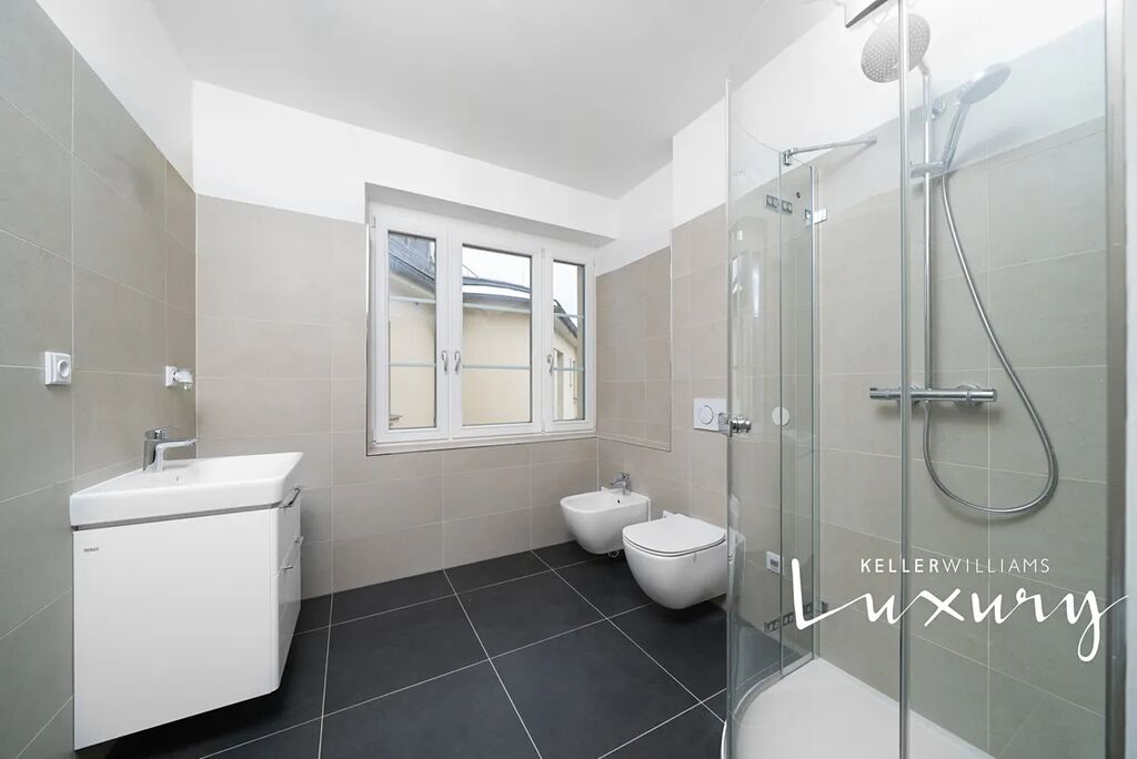 vybavenou sprchovým koutem, WC, bidetem a umyvadlem. Druhá část bytu zahrnuje