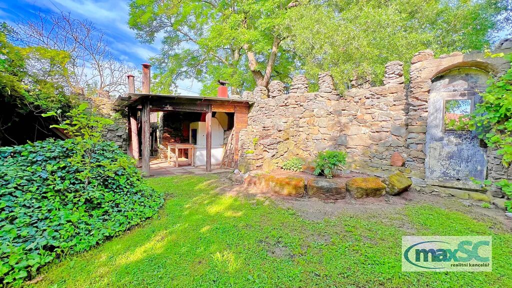 Na zahradě je několik vzrostlých ovocných stromů a záhonů se zeleninou, které je možné zavlažovat ze studny.