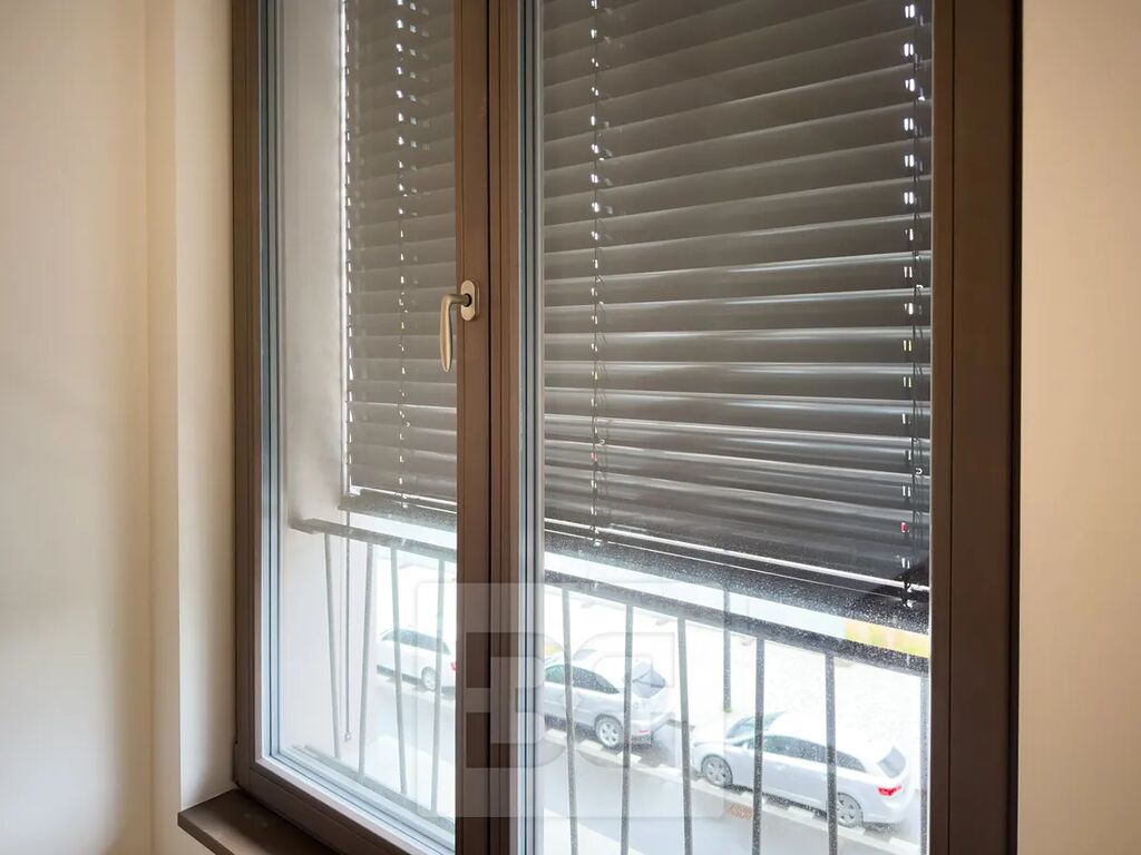 Byt je orientovaný na západ a nabízí příjemnou atmosféru i dostatek denního světla. Dispozice zahrnuje obývací pokoj s moderně vybavenou kuchyňskou linkou (lednice, myčka, trouba, indukční varná deska a digestoř), prostorná s a koupelnu se sprchovým koutem a toaletou. V koupelně najdeme dále i bidetovou sprchu, topný žebřík a prostor na pračku a sušičku. K bytu náleží i sklepní kóje o výměře 1,8m2.