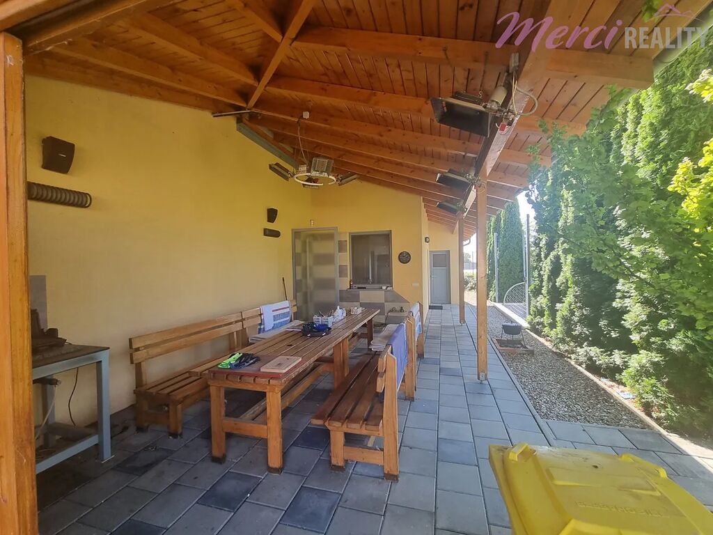 Nabízíme Vám k prodeji rodinný dům 5+1 typu bungalov o užitkové ploše 436 m2. Pozemek o celkové ploše 2144 m2 je kompletně oplocený. Při výstavbě byly použity nejkvalitnější stavební materiály a nejpokrokovější technologie dostupné na zahraničním trhu. Je zde také centrální vysavač, audio-video síť po celém areálu i spolu s WIFI sítí. Dále kamerový systém s pěti barevnými digitálními kamerami, uzamykací systém QUARD, klimatizace, vzduchotechnika, podlahové vytápění. Srážková a splašková voda po úpravě v biolog. čističce je všechna využita pro závlahu okrasné a ovocné zahrady. Na izolaci byl použit nejkvalitnější nehořlavý STYRODUR. V domě se nachází 5 pokojů, technická místnost, zimní zahrada, bazén, sauna, garáž a terasa. Na pozemku se nachází zahradní dům, který slouží jako zázemí pro sportoviště. Je zde venkovní posezení, kuchyňka, sociální zařízení a na terase je sezení pro 12 osob a diskrétní sprcha s teplou vodou. Součástí je také sklep pro skladování vína, ovoce a zeleniny. Nachází se zde multifunkční hřiště určené k provozování sportů jako tenis, fotbal, bedminton a nohejbal. Hřiště má umělý koberec o výšce 10 mm a je odkanalizované. Celé hřiště je ozvučené a osvětlené.
