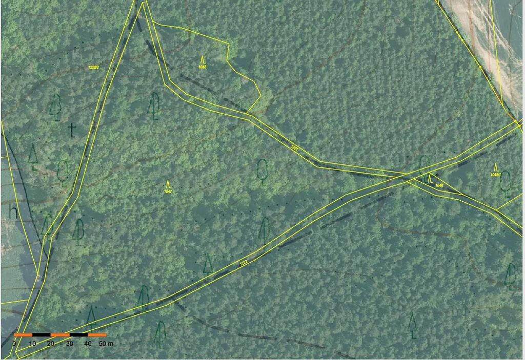 Pozemky p.č. 1221, 1222, 1223 v k.ú. Probulov jsou dislokovány východně od obce Probulov. Část pozemku p.č. 1222 je ve skutečnosti ornou půdou. Ve skutečnosti jsou tyto pozemky využívány jako plochy lesních komunikací, které jsou využívány pro potřeby hospodaření v lesích. Šíře těchto pozemků je do 4 m, jsou nezpevněné, bez konstrukčních silničních prvků, s půdním povrchem. Tyto pozemky byly oceněny jako stavební pozemky – ostatní komunikace.