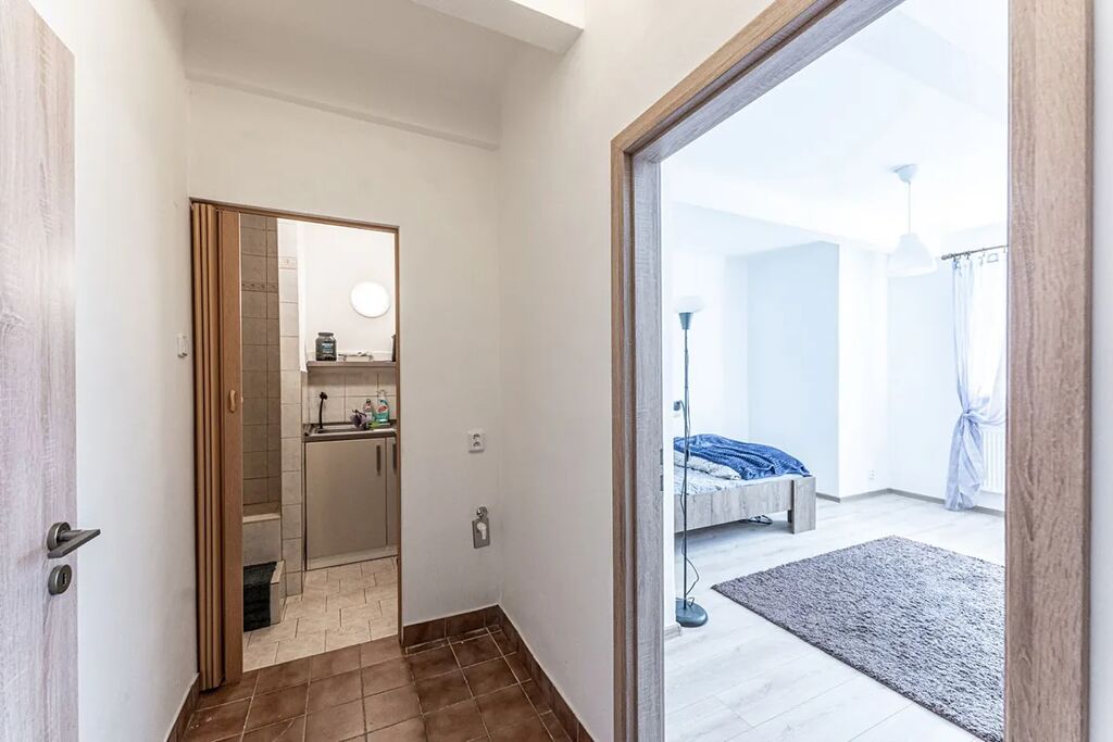 Pronájem světlého bytu 1+kk, 25 m2 v polosuterénu cihlového domu nedaleko metra B - Palmovka. Obývací pokoj, kuchyňský kout je umístěný ve vstupní chodbě a je částečně vybaven spotřebiči (lednice není), koupelna se sprchovým koutem, umyvadlem, toaleta zvlášť. Přípojka na pračku. Vytápění bytu a ohřev vody řešen plynovým kotlem. V blízkosti domu je tramvajová zastávka, kterou se dá dostat za 5 min. buď na metro Kobylisy nebo Palmovka. Parkování možné na ulici. Prosím ne domácí zvířata. Vhodné pro max 1 osobu. Volný po dohodě během prosince 2025. Prosím pozor, pokud zájemce není z EU, potřebuje k převodu el. a plynu českého garanta.