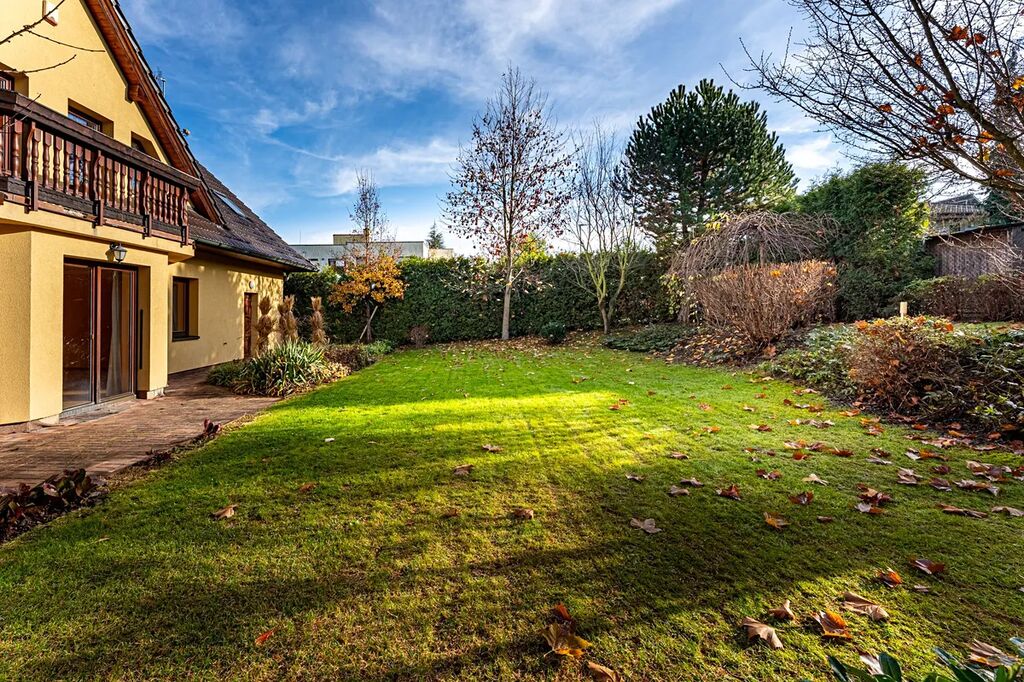 Nemovitost je obklopena vzrostou a udržovanou zahradou o výměře 713 m², která je plně oplocená s automatickou bránou na elektrický pohon. Zahrada je vybavena zavlažovacím systémem. Údržbu zahrady zajišťuje nájemce. Tato zahrada představuje ideální místo pro odpočinek a relaxaci venku.