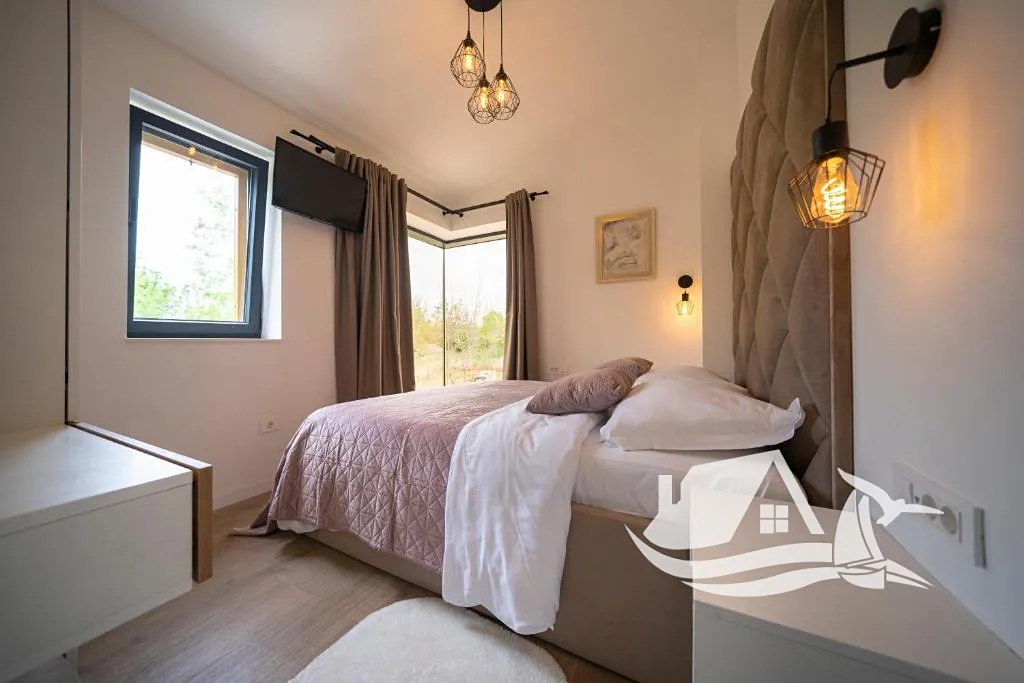 Vila se skládá z přízemí a prvního patra. V přízemí se nachází plně vybavená kuchyň, jídelna, obývací pokoj a koupelna a v prvním patře jsou dvě ložnice. Ve dvoře je vyhřívaný bazén, venkovní sprcha, parkoviště.
