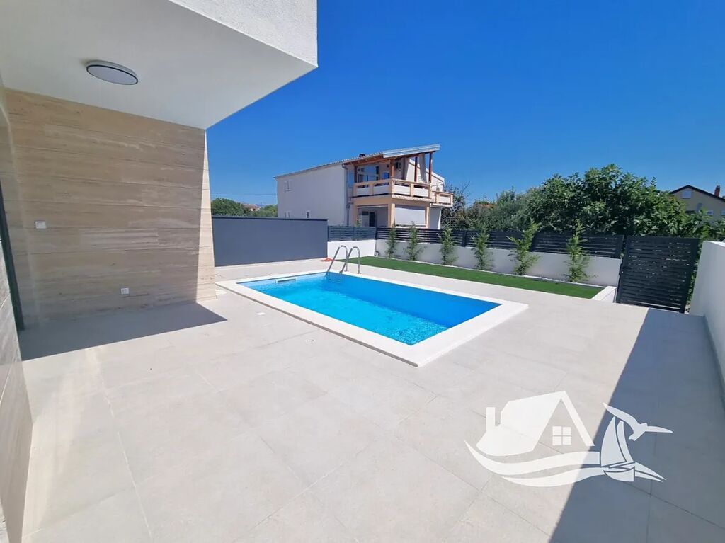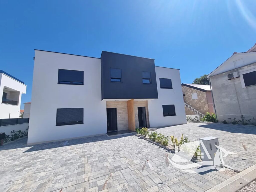 Krásný, moderní dvojdům s bazénem je na prodej na jižní straně ostrova Vir. Nachází se pouhých 260 m od moře.