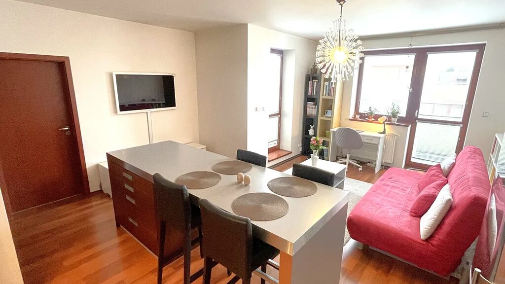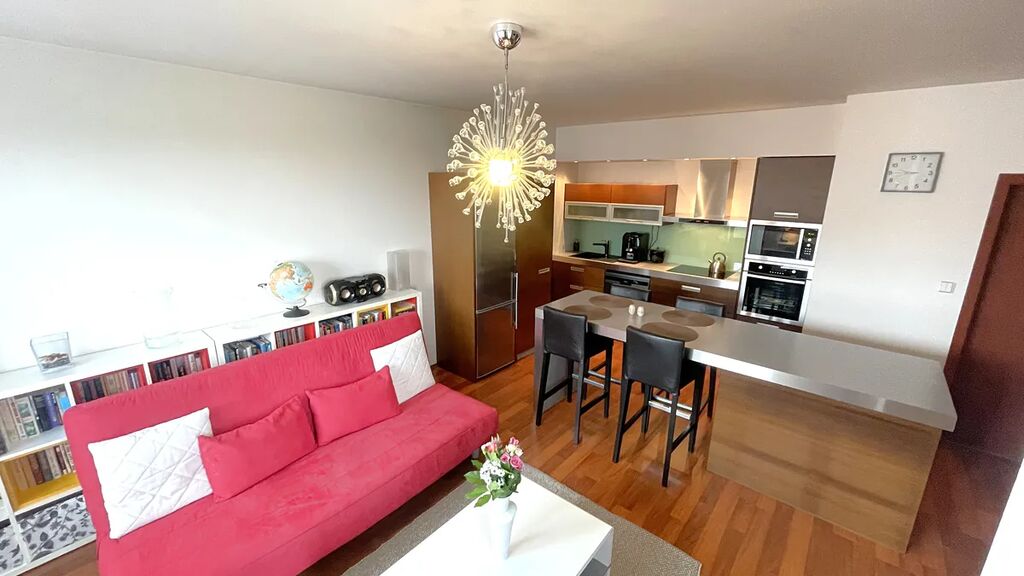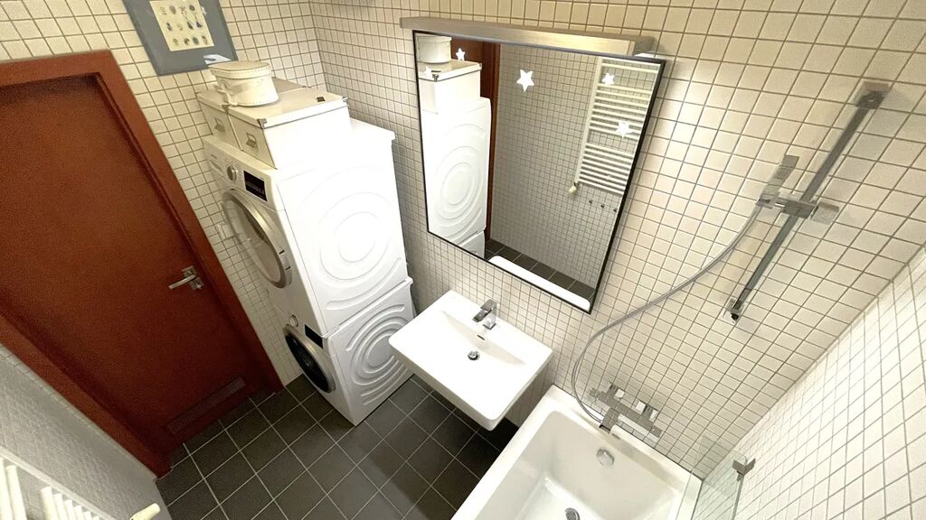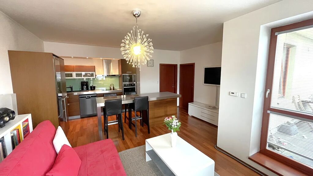 Byt je vybaven kuchyňskou linkou s kompletními vestavěnými spotřebiči zn. Fagor, koupelnou s vanou, samostatným WC a technickou místností s plynovým kotlem. K dispozici je domácí telefon + vrátný, bezpečnostní čipový systém, vysokorychlostní internet a kabelová TV. V domě je společná kolárna/kočárkárna. Nízké provozní náklady (cca 7.000,- Kč/měsíc - komplet - 3x osoby).