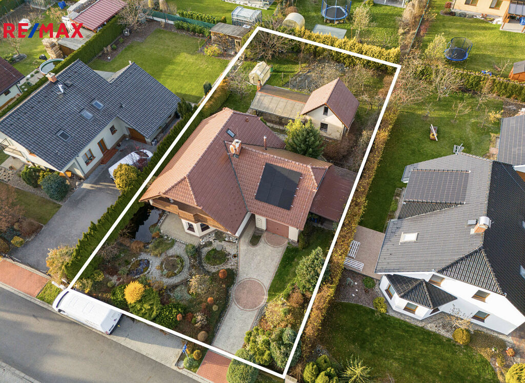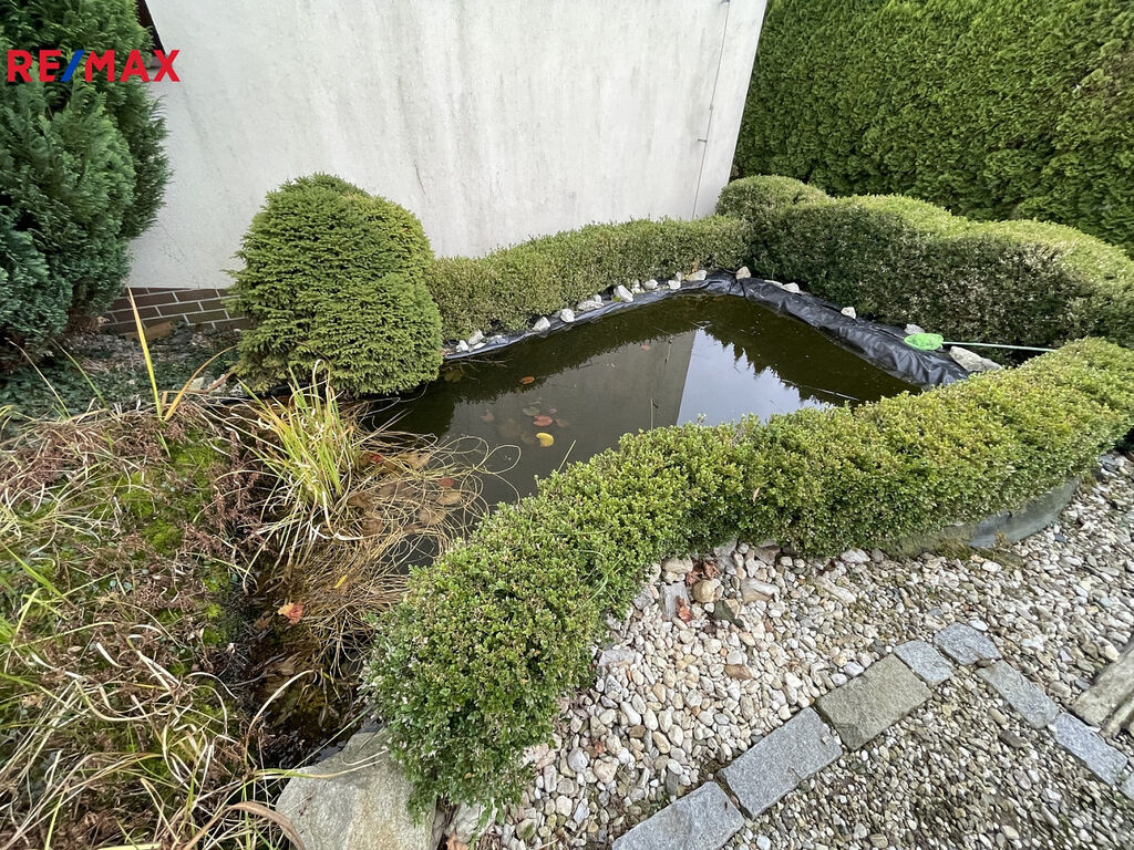K domu náleží krásná, udržovaná zahrada, která poskytuje dostatek klidu i soukromí. Skvělým bonusem je zimní zahrada – ideální místo pro posezení s přáteli nebo odpočinek kdykoliv během roku.