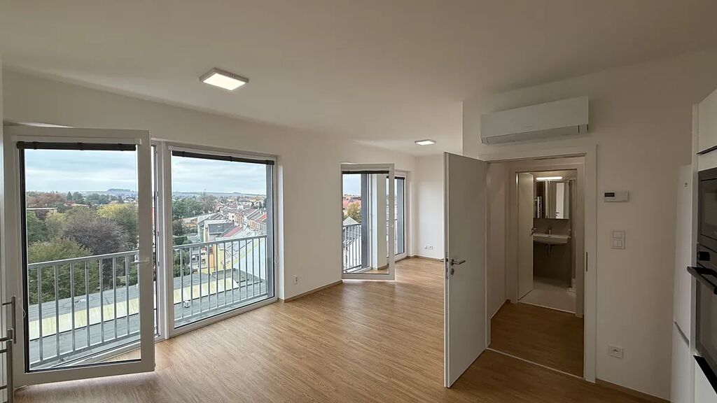 Nabídka pronájmu nově postaveného moderního a plně vybaveného bytu 1+kk, o podlahové ploše 36 m2, s hezkým zařízením, klimatizací a sklepem v suterénu bytového domu, v rezidenci Čechova, v samotném centru Přerova.