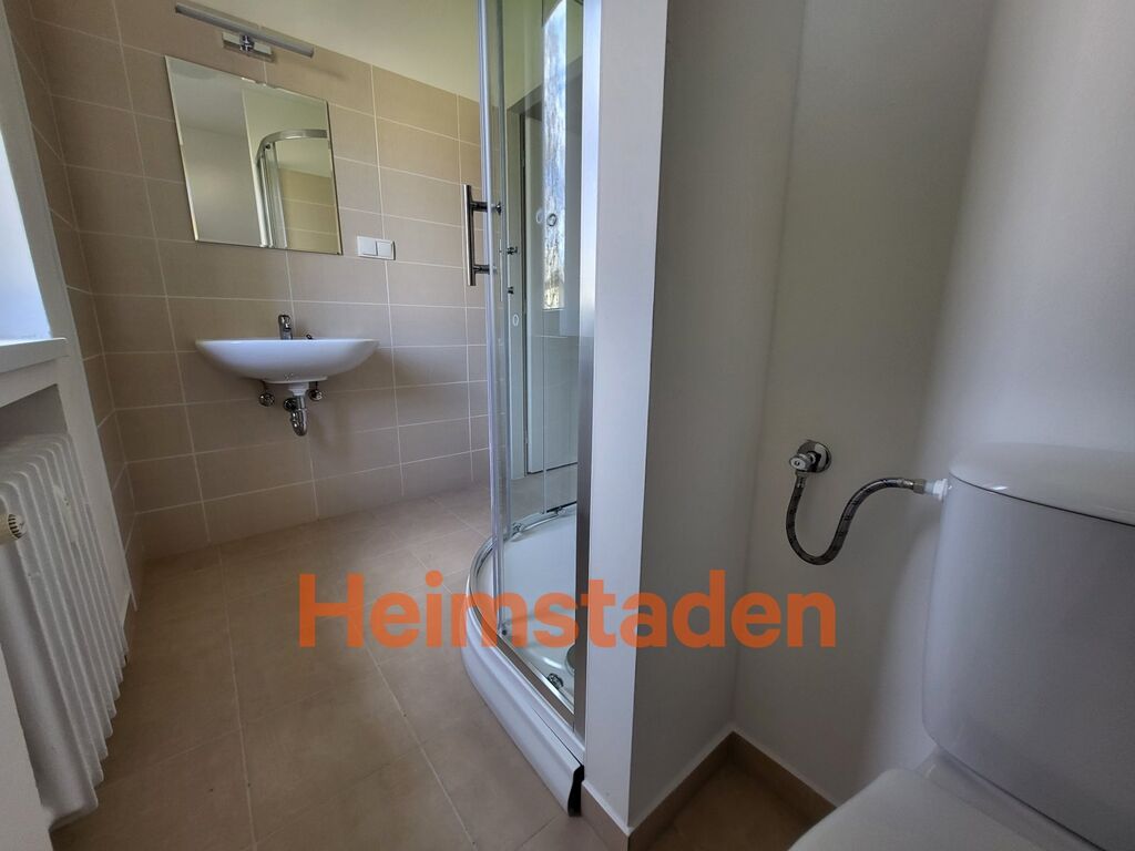 Byt prošel nadstandardní rekonstrukcí a nabízí vzdušný, světlý pokoj spojený s kuchyní. Dominantou je elegantní kuchyňská linka s vestavěnými spotřebiči, která splní i náročnější představy. Koupelna v béžovo-hnědém designu se sprchovým koutem a oknem působí moderně, útulně a zároveň prakticky.