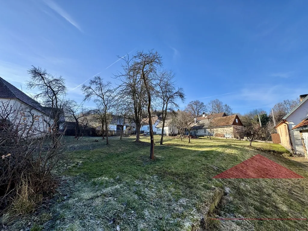 Popis a poloha: obdélníkový, slunný, mírně svažitý pozemek s ovocnými stromy, ležící ve velmi klidné původní části obce. Zděná garáž (zapsaná jako jiná stavba bez čp./č.ev.) v rohu u cesty = ideální zázemí pro stavbu. Přístup z obecní komunikace.