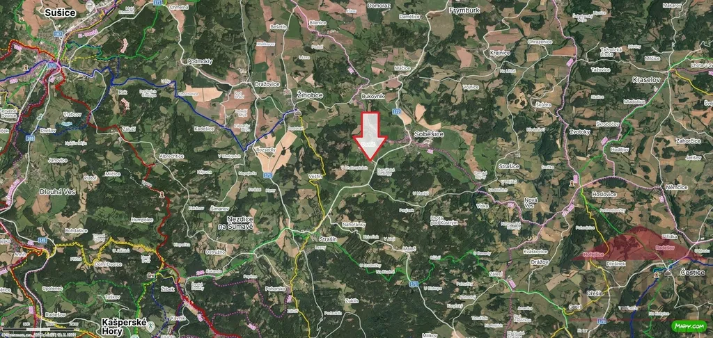 Především malebná a velmi klidná poloha Damíče předhůří Šumavy v nadmořské výšce 700 m, schovaná poloha pozemku v obci a inženýrské sítě na hranici pozemku jsou hlavní přednosti tohoto pozemku v dosahu střediskové obce Soběšice (652 m.n.m.; obecní úřad s poštou a knihovnou; mateřská školka; obchod COOP; hostinec; hotel Pod Hořicí) a dobrém dojezdu do měst Sušice 17 km a Kašperské Hory 13 km, jenž je turistickým centrem v této části Šumavy. Nutno vidět klidnou lokalitu a ideální velikost pozemku.